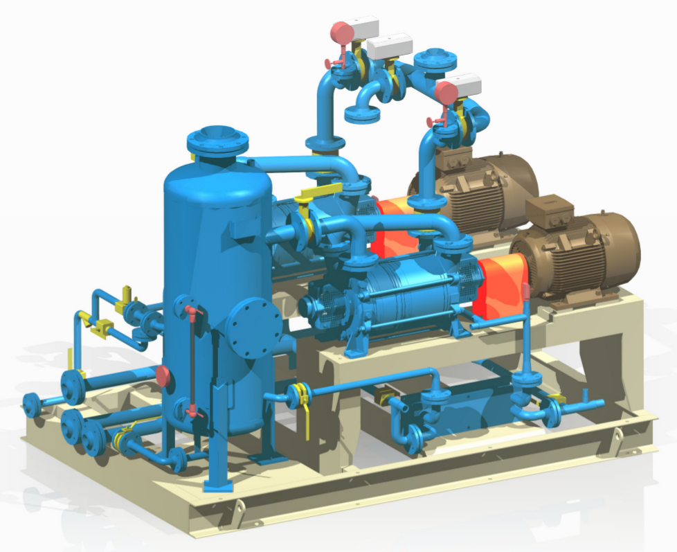 Návrh a konstrukční řešení vakuových stanic s kapalinokružnými vývěvami vždy provádíme na míru, podle požadavků dané aplikace. Součástí zařízení standardně bývá i: